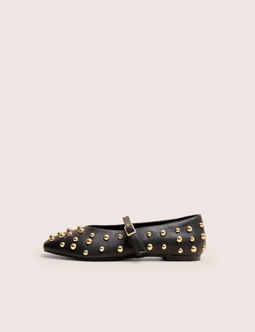 Elevate your everyday style with the Public Desire UK Elsie Black Studded Ballerina Flats. The edgy studded detailing offers a perfect balance of sophistication and attitude. Designed for comfort and versatility, these flats effortlessly complement both casual and dressy looks.