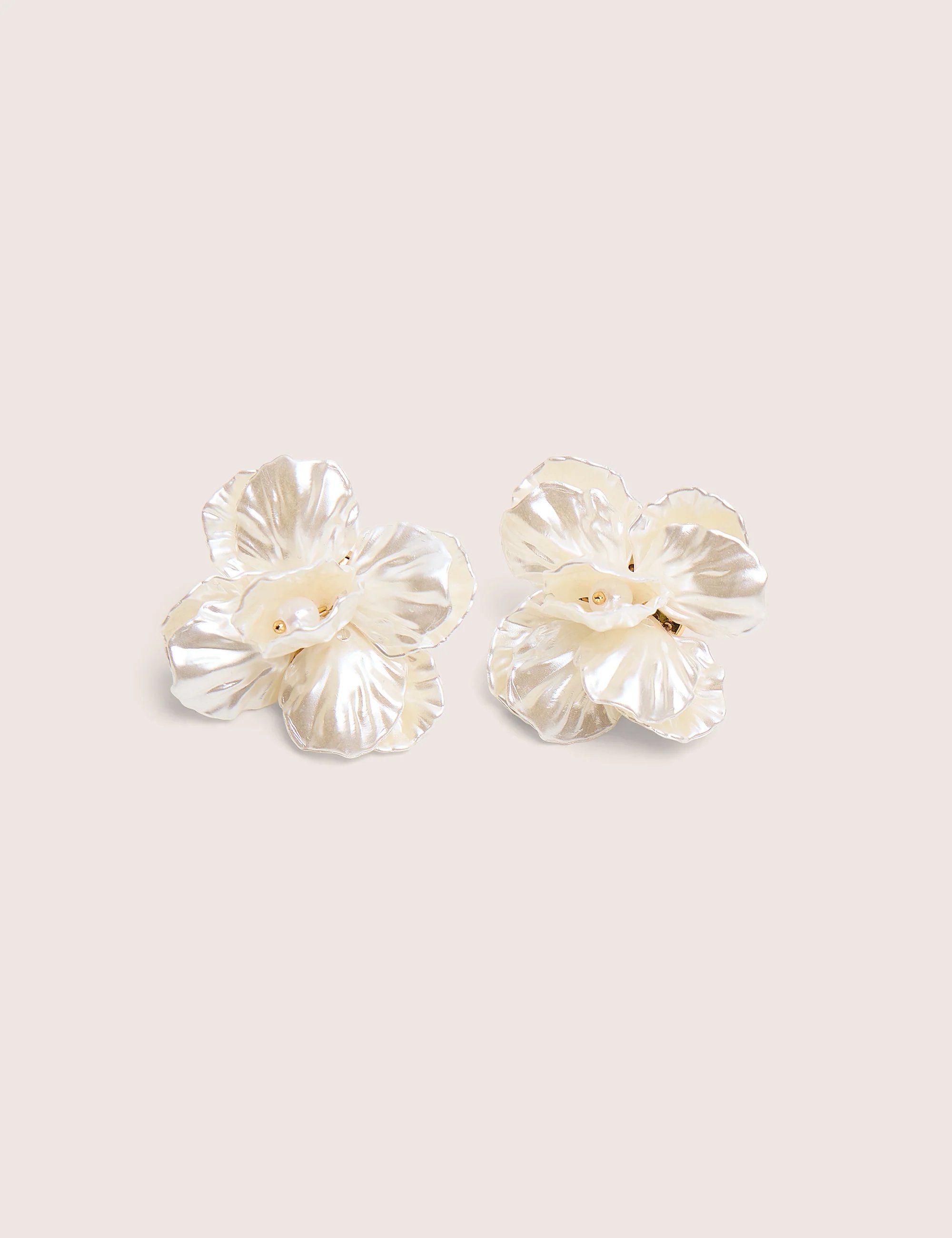 The Public Desire Pearl White Flower Stud Earrings is made from pearl white.