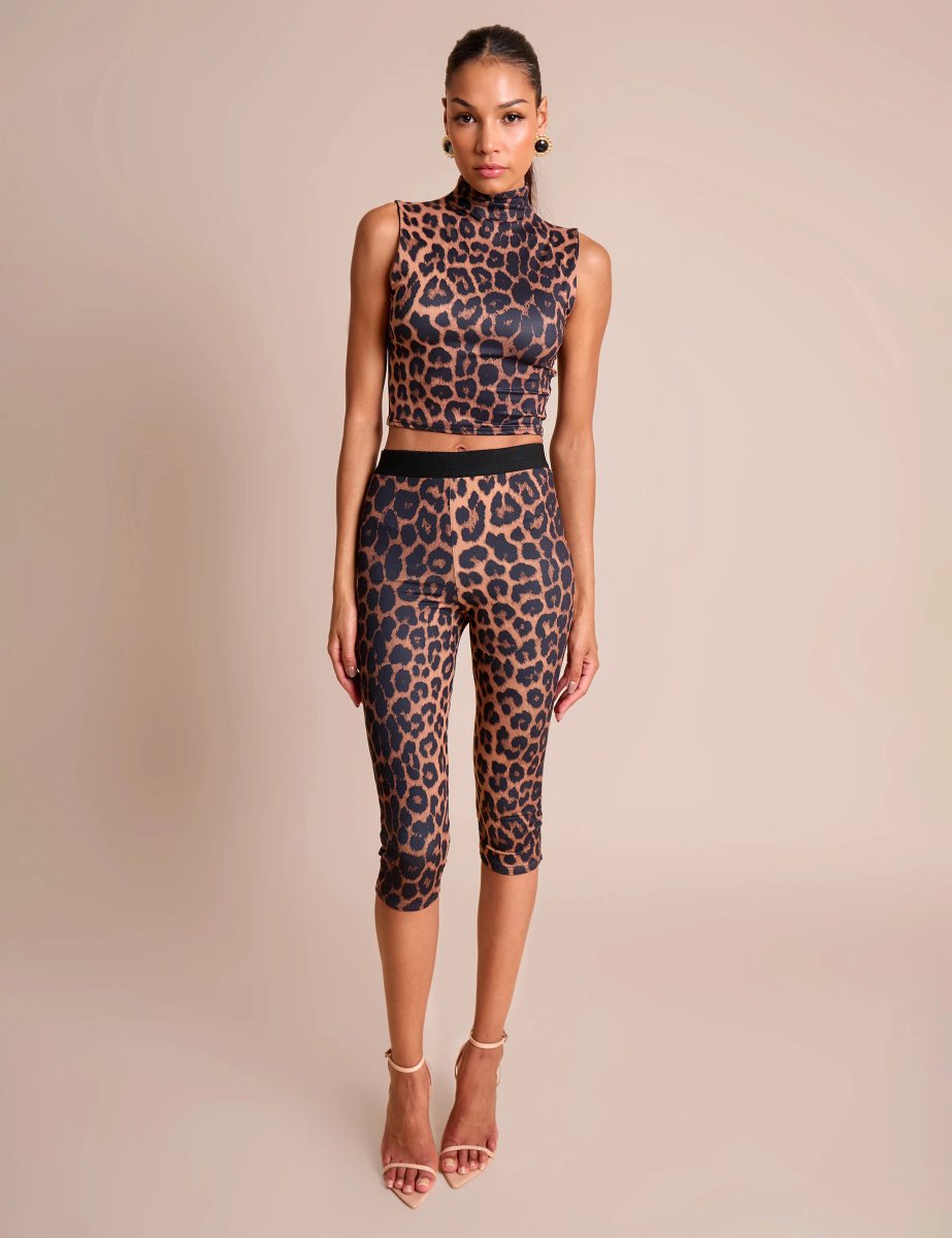 The Public Desire UK High Waist Luxe Capri Pants in Leopard is available in sizes 6, 8.
