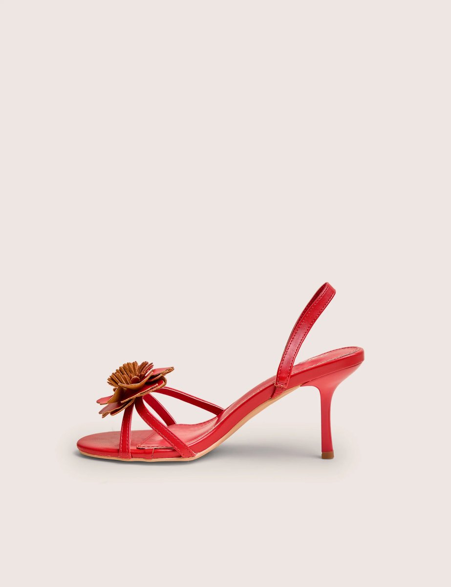 The Public Desire UK Red Pu 3D Flower Mid Heels is ideal for party, evening, date-night.