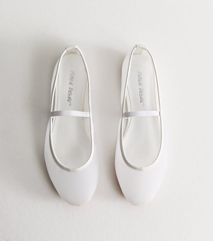 Public Desire's white woven ballet pumps are perfect for a laid-back weekday style. Their minimalist design and elasticated strap make them versatile for pairing with everything from jeans to dresses.