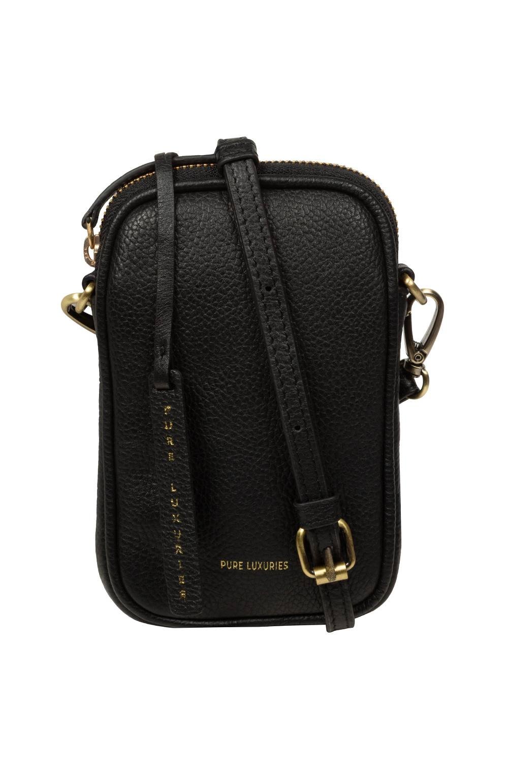 The Pure Luxuries London Black Leather Cross Body Phone Bag is available in sizes ONE SIZE.