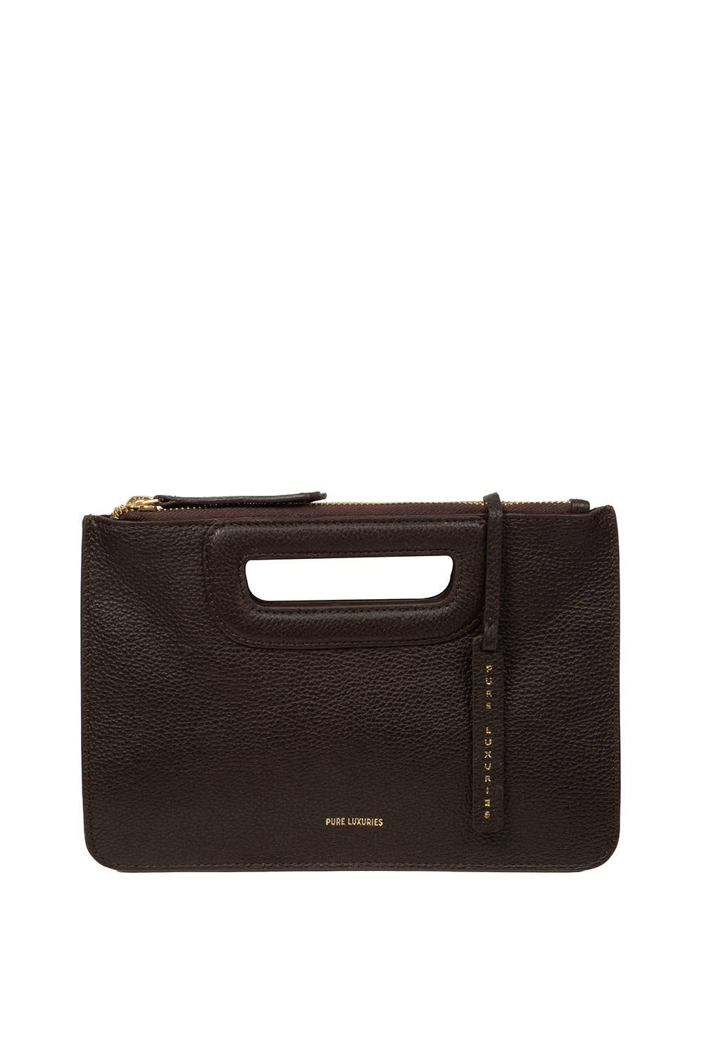 The Pure Luxuries London 'Guinevere' Dark Brown Leather Clutch Bag is available in sizes ONE SIZE.