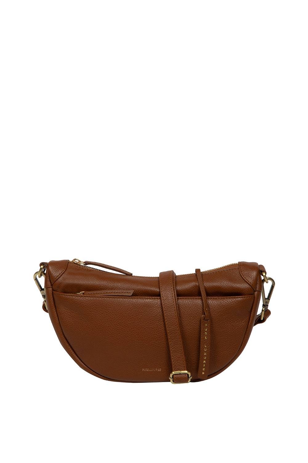 Unique crescent-shaped cross body bag from Pure Luxuries London. Made from high-quality natural leather, it features a zip-over top and a soft-lined interior. Ideal for everyday use.