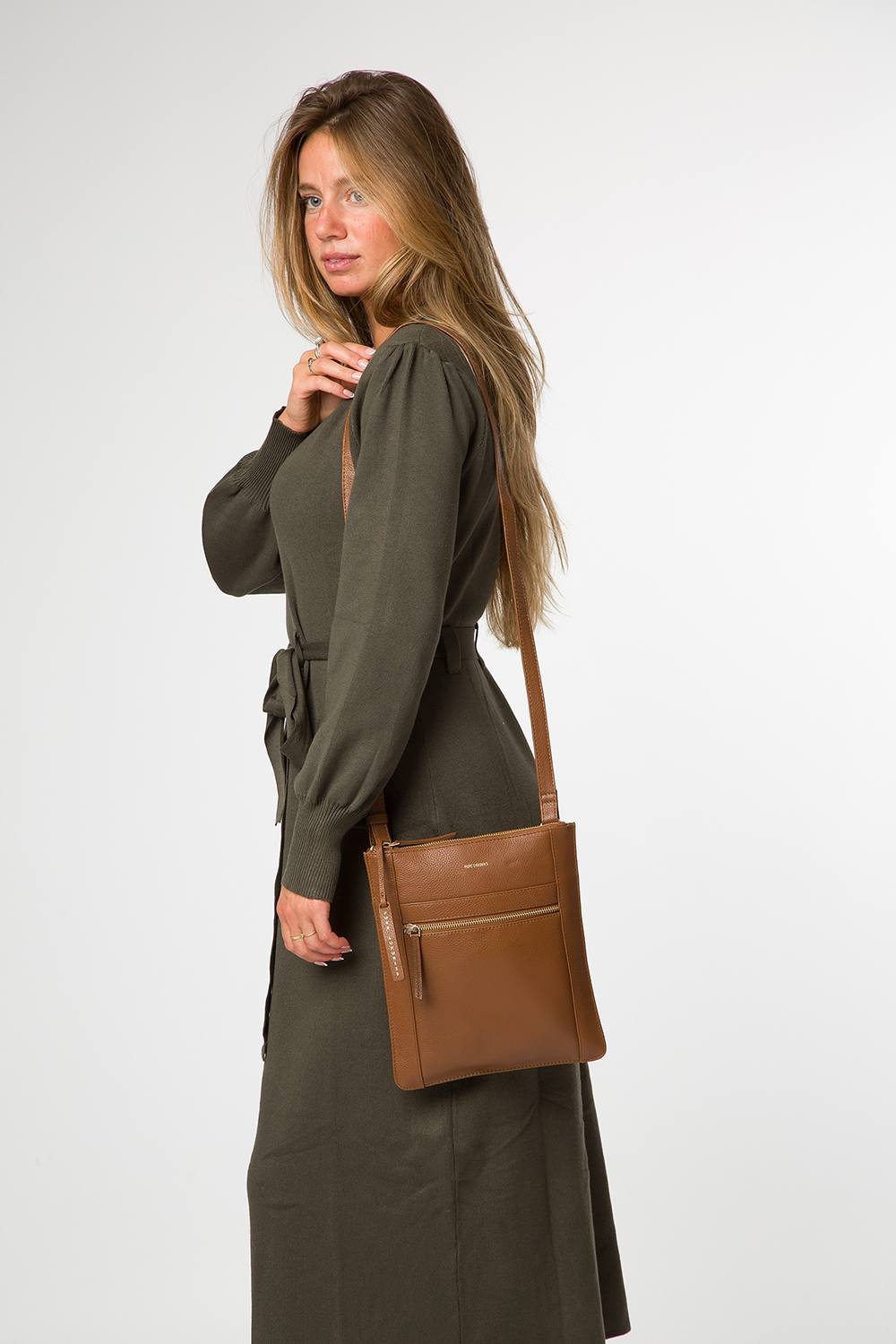 The Pure Luxuries London Tan Leather Cross Body Bag is available in sizes ONE SIZE.