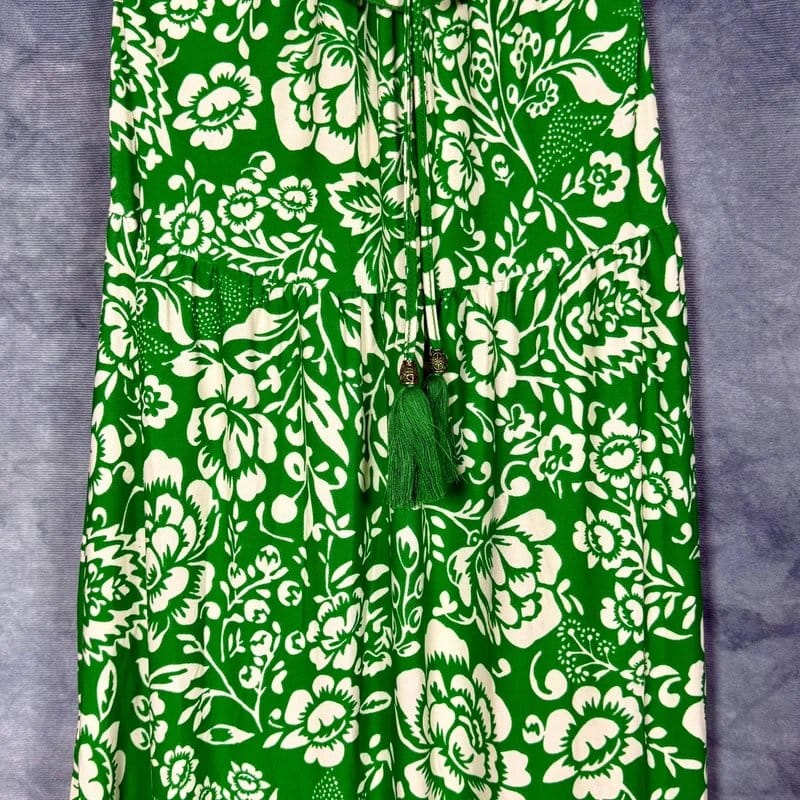 See all outfit ideasVibrant green floral off-shoulder maxi dress with a tassel detail. Features an elasticated back for a flattering fit. Perfect for casual and evening occasions.