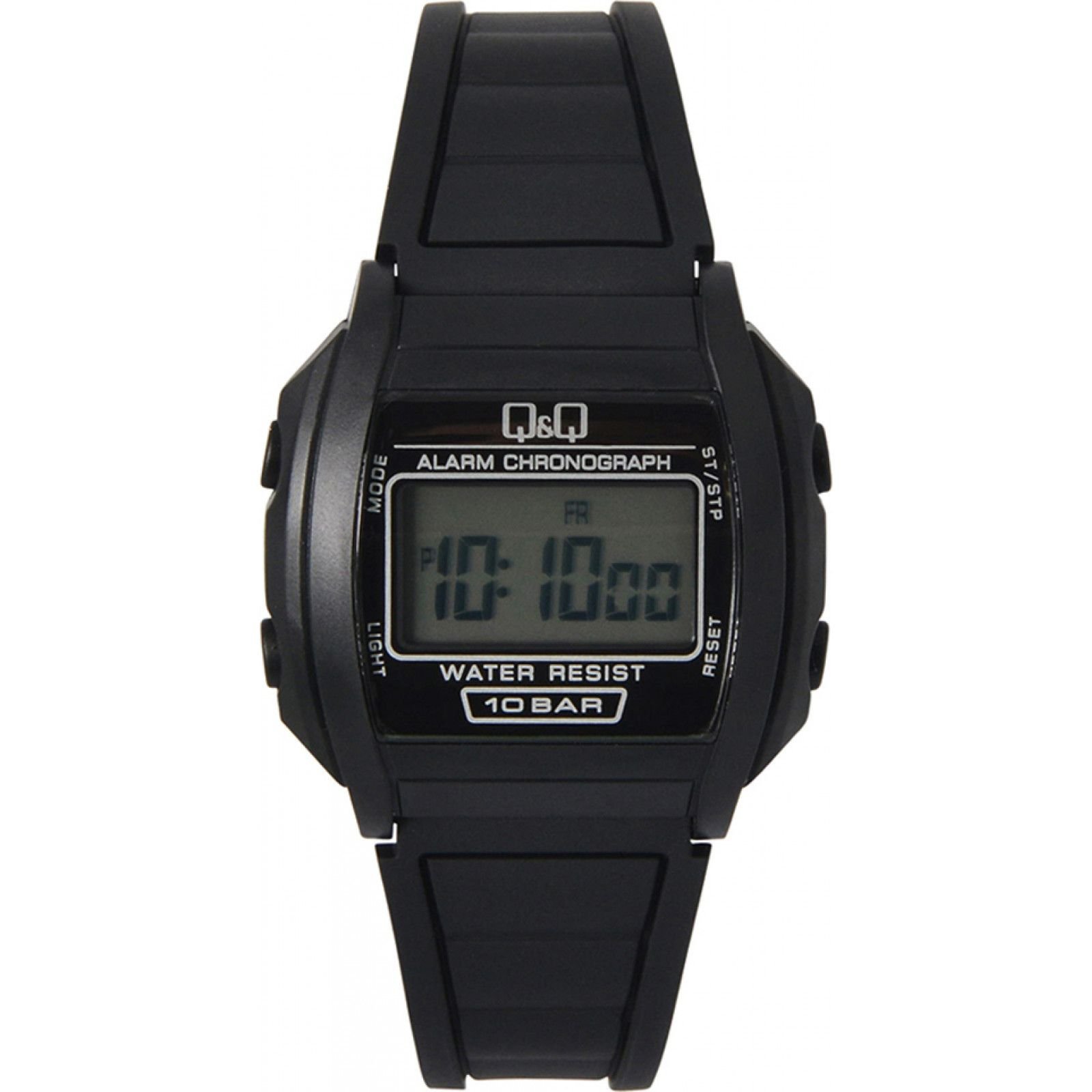 Stylish black quartz watch from Q&Q, featuring a digital display and water resistance up to 10 bar. Ideal for everyday wear and outdoor activities.