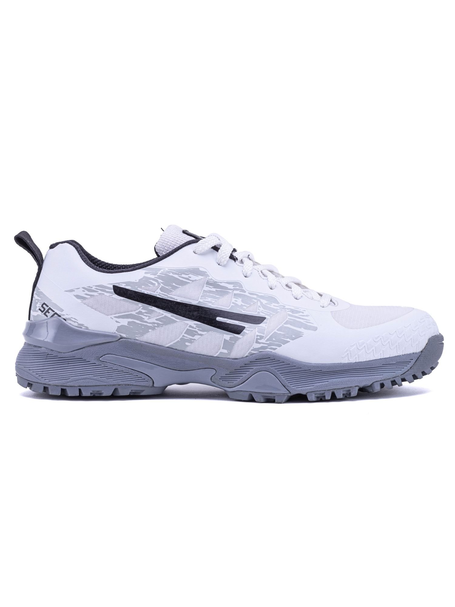 The QUIVE White Rubber Studs Cricket Boots for Men is made from rubber, EVA.