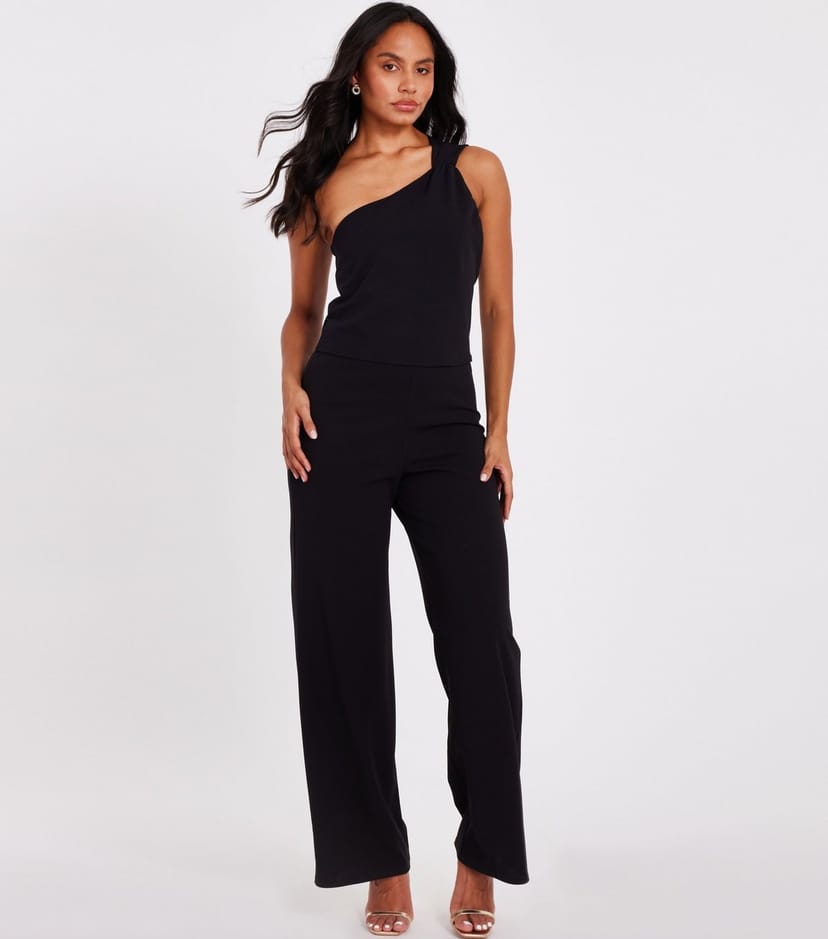 The Quiz Black Woven One Shoulder Wide Leg Jumpsuit is ideal for evening, date-night, party.