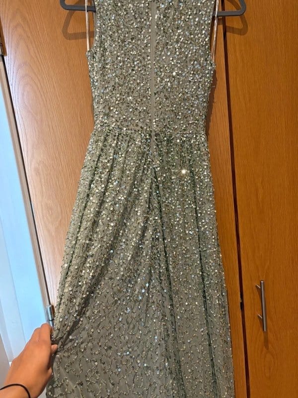 Back to Quiz Sage Sequin Maxi Dress →