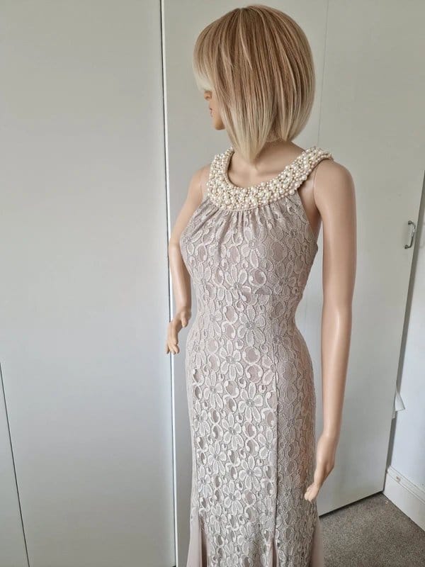 “Pair with pearl drop earrings and a classic clutch for a timeless evening look.”
