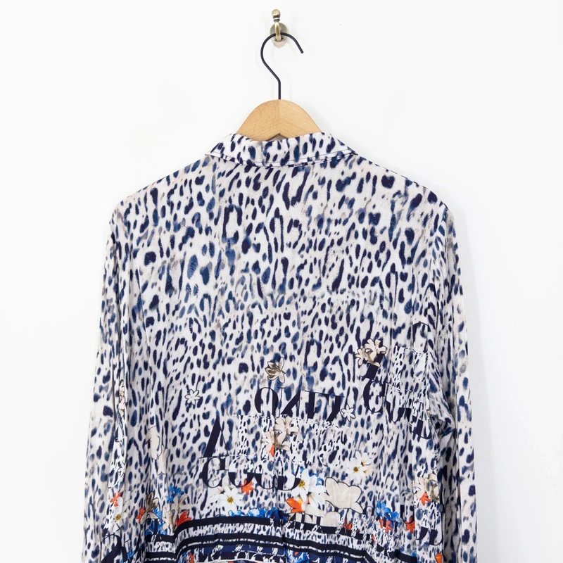 The Rabe Floral Leopard Shirt Blouse with Long Sleeves in Multi is available in sizes XL.