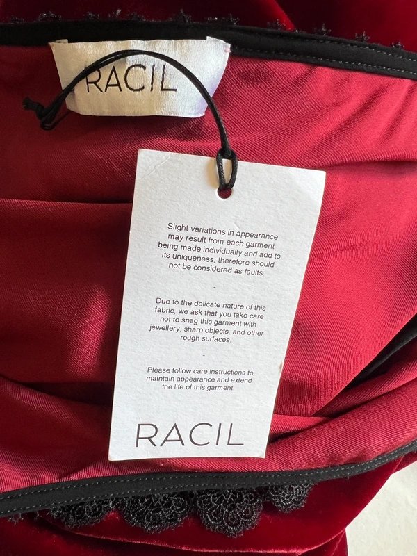 The Racil Burgundy Velvet Long Occasion Dress is available in sizes S.