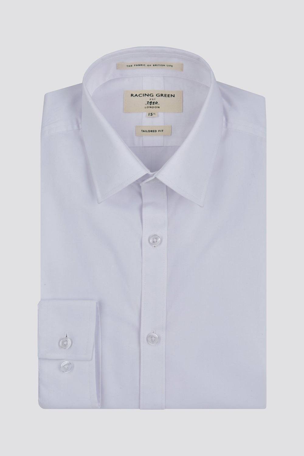 The Racing Green White Men's Poplin Tailored Fit Shirt is available in sizes ONE SIZE.