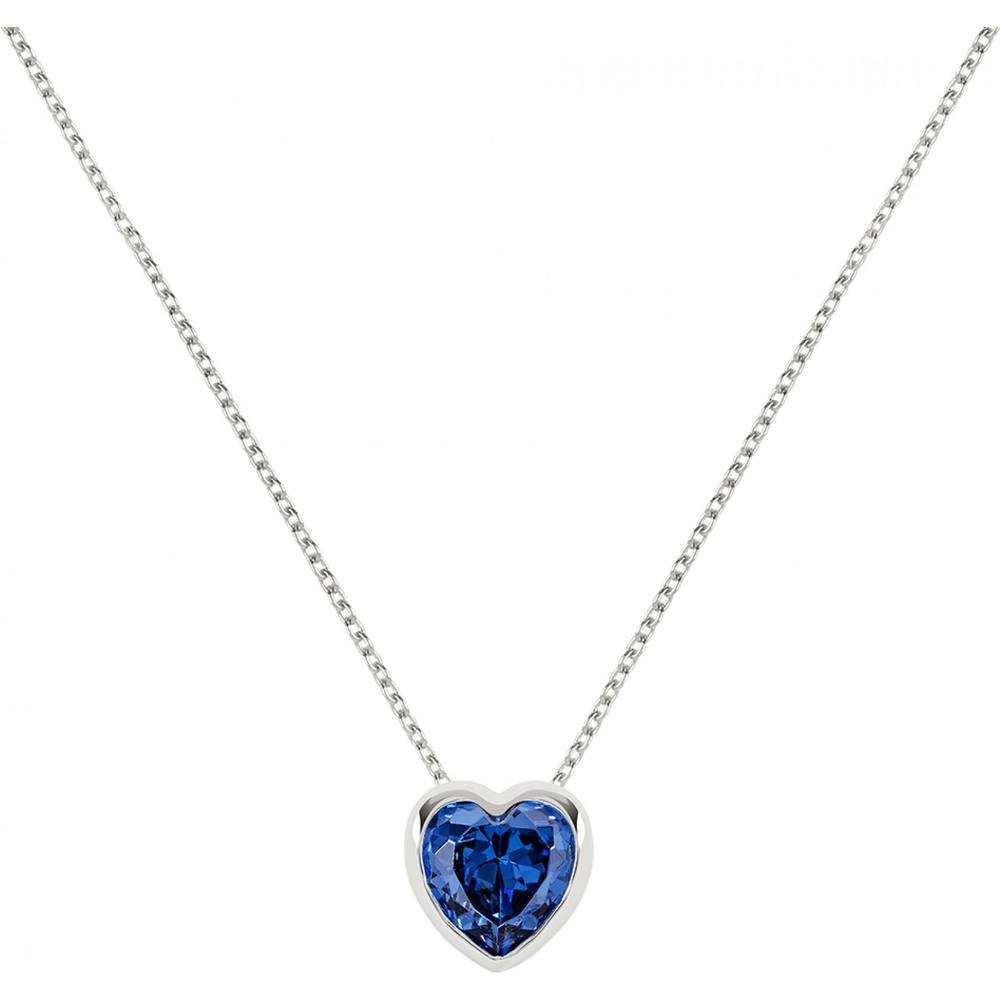 Elegant silver necklace featuring a heart-shaped pendant with a blue gemstone. Crafted with high-quality materials and sublime craftsmanship, this piece is perfect for adding a touch of sophistication to any outfit.