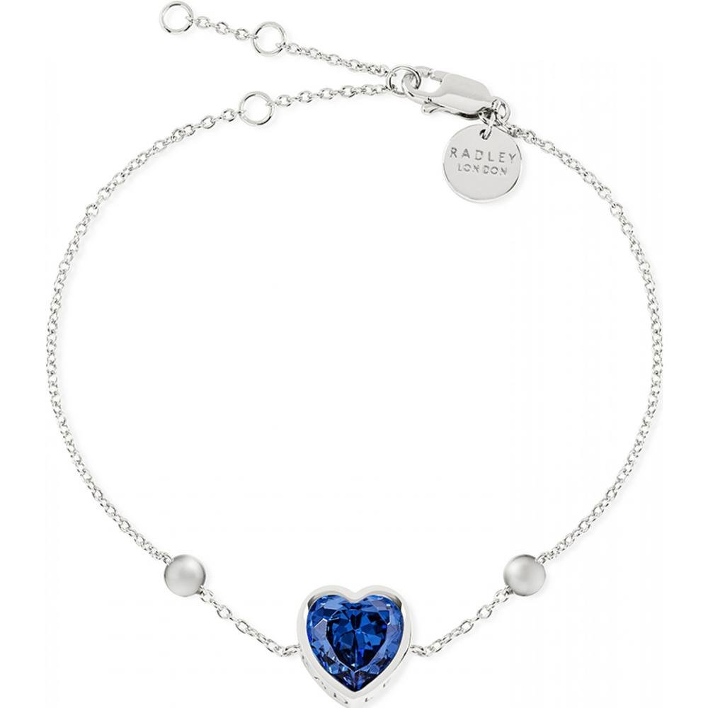 Elegant silver love bracelet from Radley featuring a heart-shaped blue topaz centrepiece. Crafted with high-quality materials and sublime craftsmanship, this bracelet is perfect for adding a touch of luxury to any outfit.