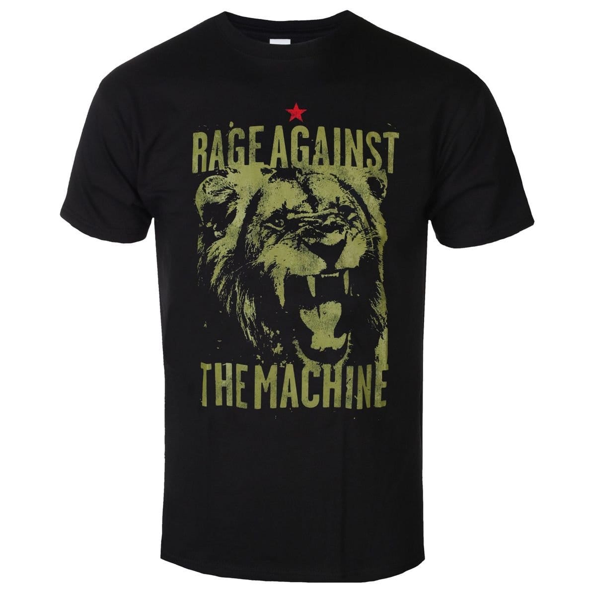 This black cotton t-shirt features a bold lion graphic and the iconic Rage Against the Machine logo. Made from 100% ringspun cotton, it offers a soft touch and a classic fit. Ideal for casual wear or making a statement.