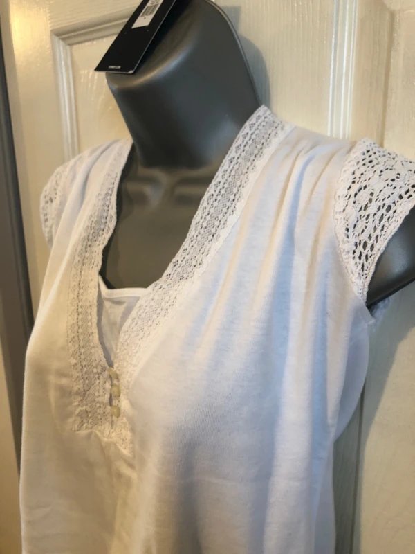Designed with a white soft 100% cotton material, this classic universal all matching shirt features lace details, an under shirt effect, and a button effect. Perfect for versatile and effortless styling.