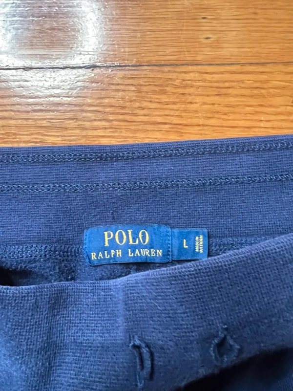 The Ralph Lauren Navy Blue Polo Sweatpants is available in sizes L.