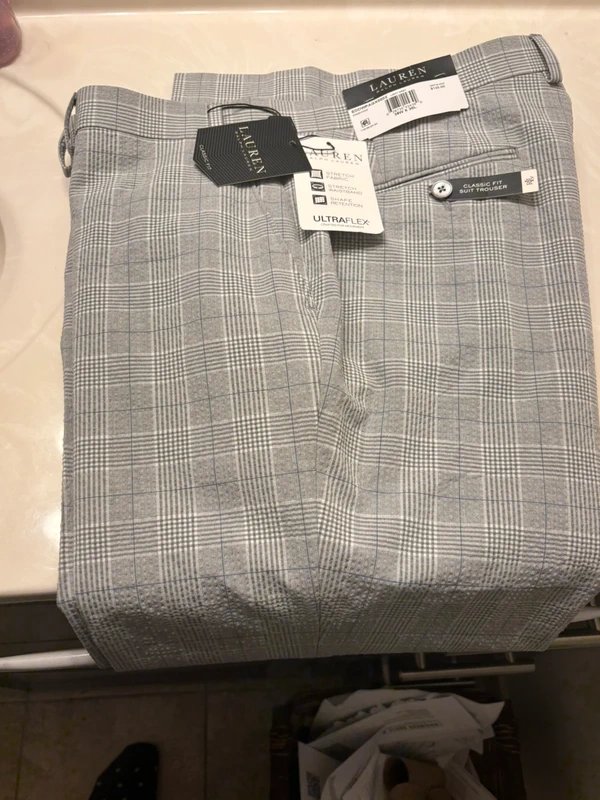 The Ralph Lauren Grey Check Cotton Trousers is available in sizes XXXL, XXL, XL, XS, L, M, S.