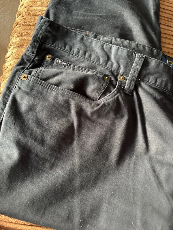 The Polo Ralph Lauren Navy Denim Trousers is available in sizes L.