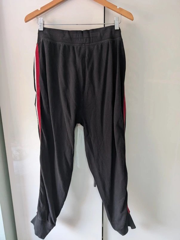 The Ralph Lauren Black and Red Joggers is available in sizes L.