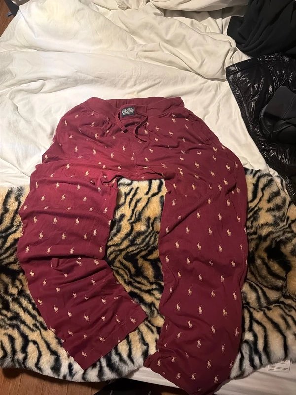 The Ralph Lauren Burgundy Cotton Print Pants is available in sizes L.