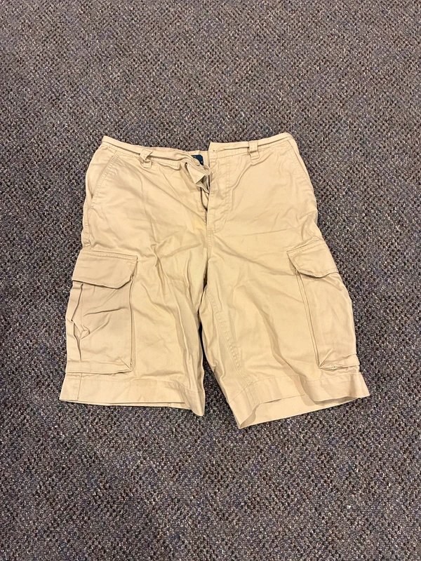 The Ralph Lauren Khaki Cargo Shorts is available in sizes M.
