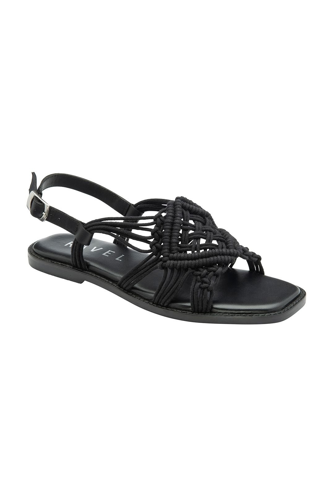 The Ravel Women's Black Textile Weave Flat Sandals is available in sizes 4.