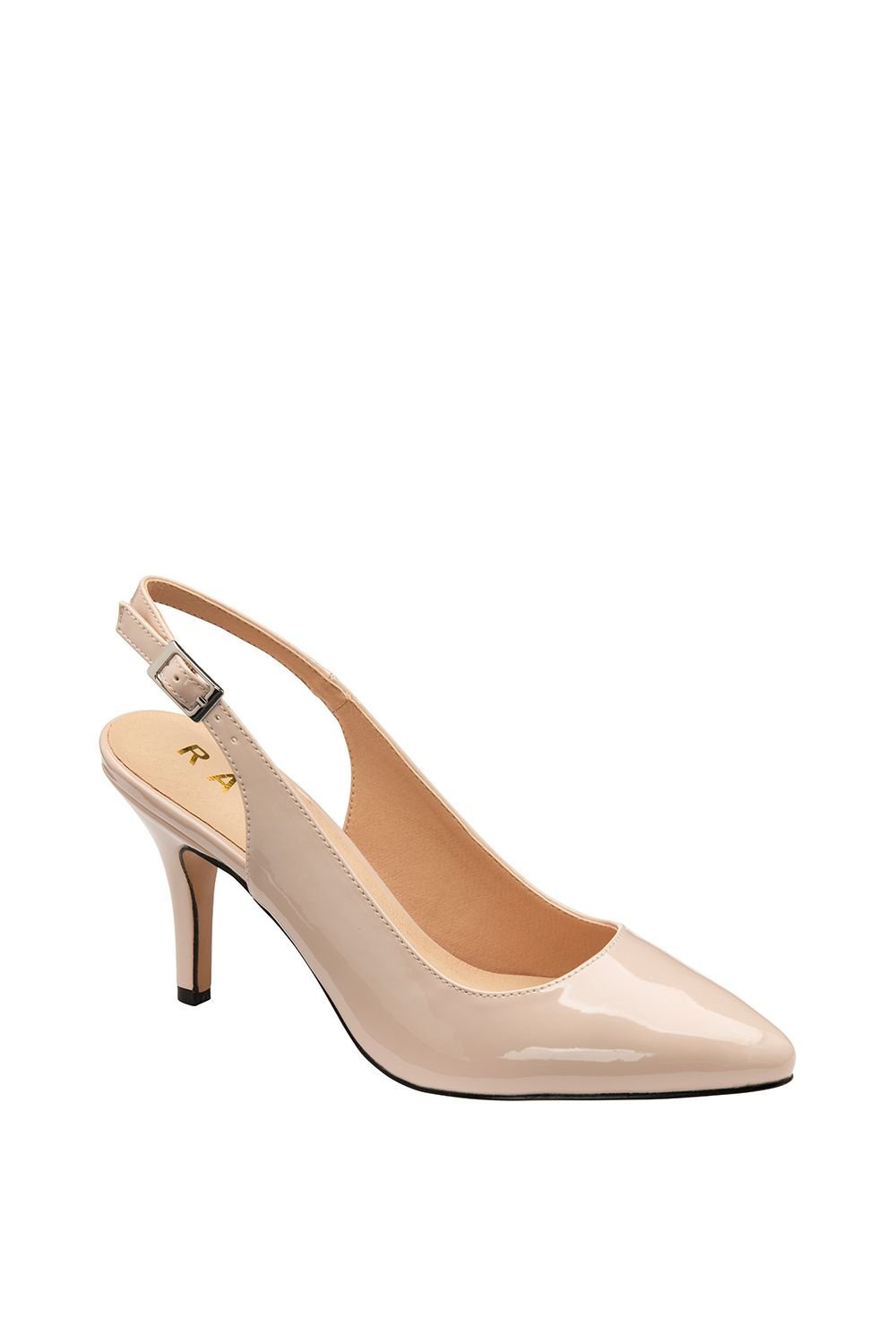 The Ravel Women's 'Kavan' Nude Patent Slingback Court Shoes is available in sizes 3, 4, 5, 6, 7, 8.