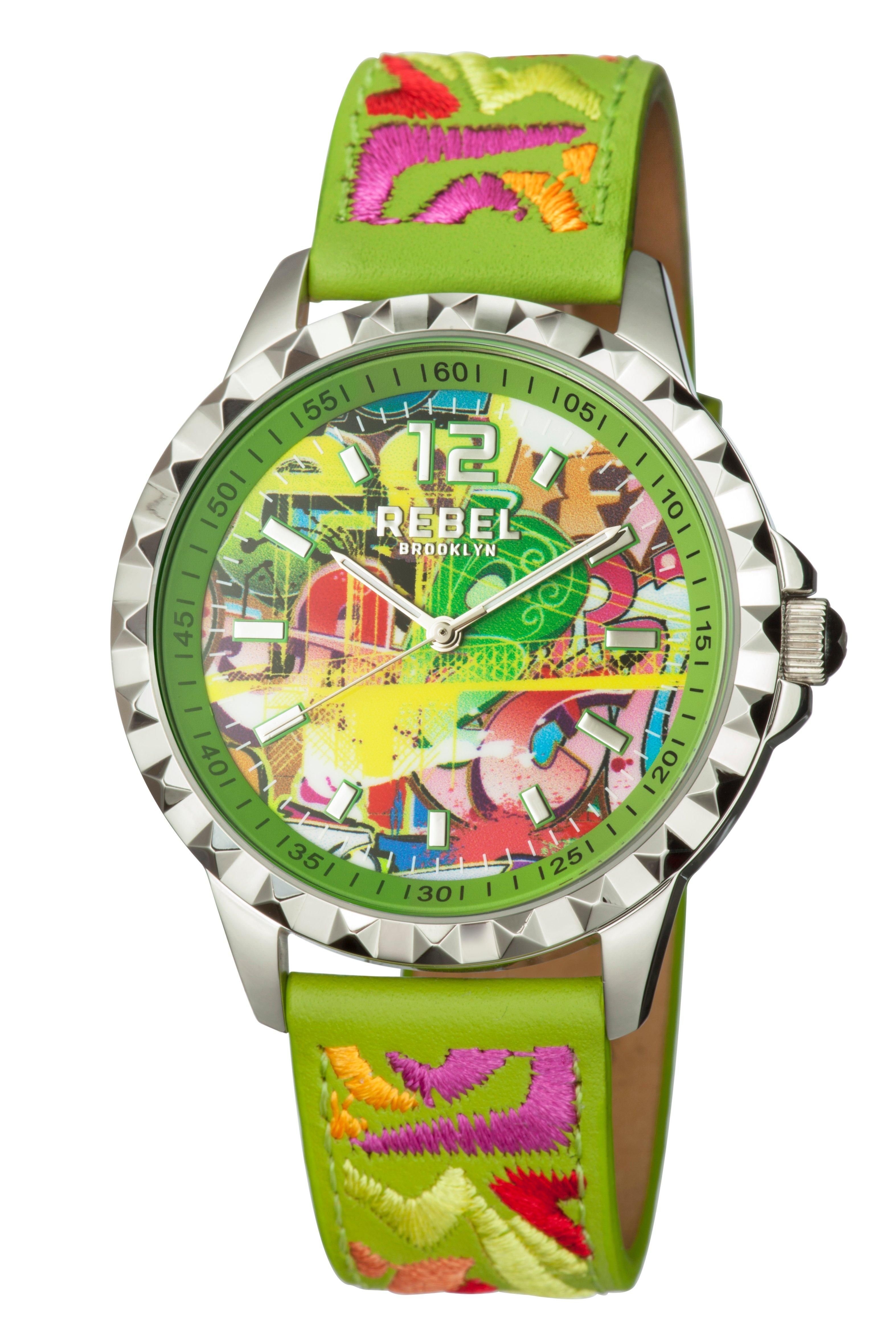 The Rebel Women's Dumbo Lime Green Dial Leather Watch is made from leather, steel.