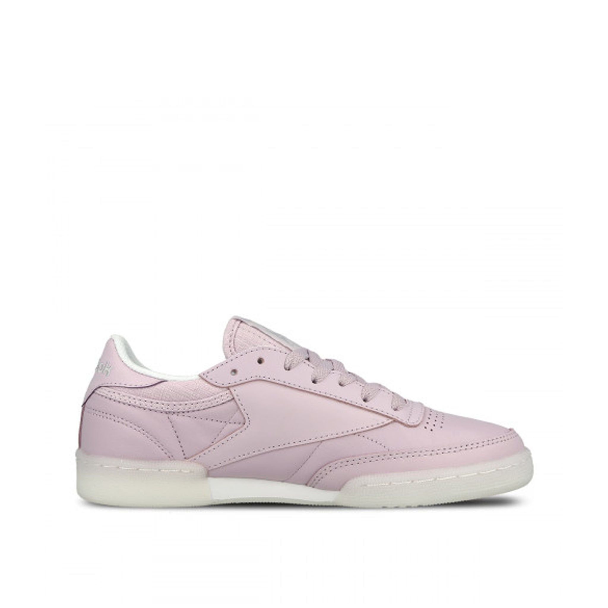 Stylish pink leather trainers by Reebok with a refined and feminine aesthetic. The smooth upper and classic silhouette make these trainers perfect for everyday wear.