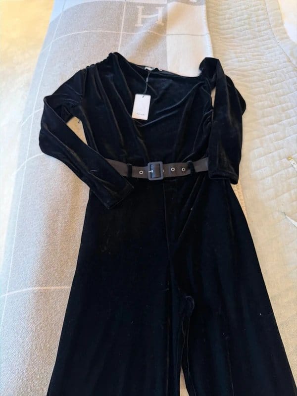 The Reiss Black Velvet Jumpsuit Size 10 is available in sizes S.