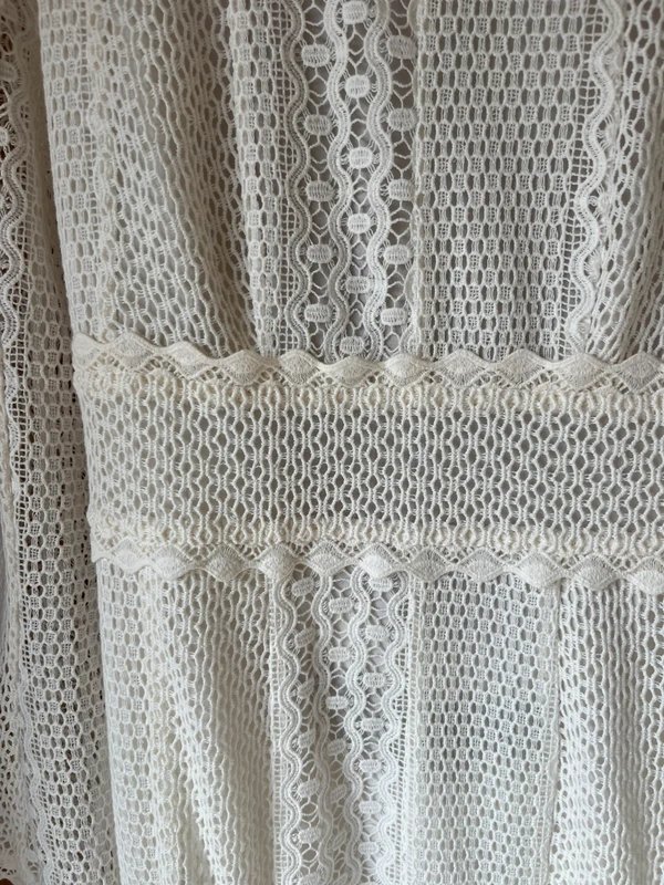 The Reiss Elegant Lace Midi Dress with Long Sleeves in Cream is available in sizes M.