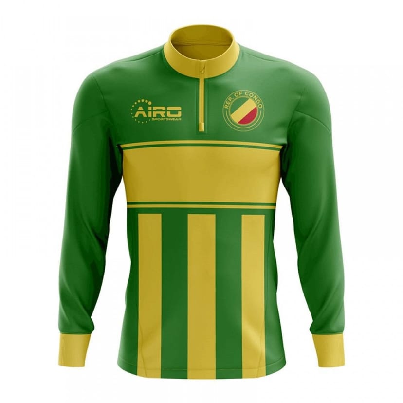 Exclusive Republic of Congo football halfzip midlayer top from the Airo Sportswear range. Show your support for the Republic of Congo national team with this stylish, premium halfzip midlayer top, perfect for providing extra warmth during training. It is made from a stretchy lycra-type material.
