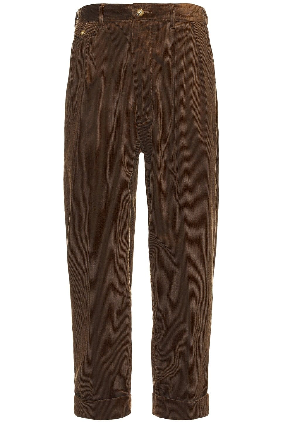 These corduroy trousers by Revolve feature a classic pleated front and a rich golden brown hue, perfect for a laid-back yet polished look. Made with a comfortable fit, these trousers are ideal for casual outings.