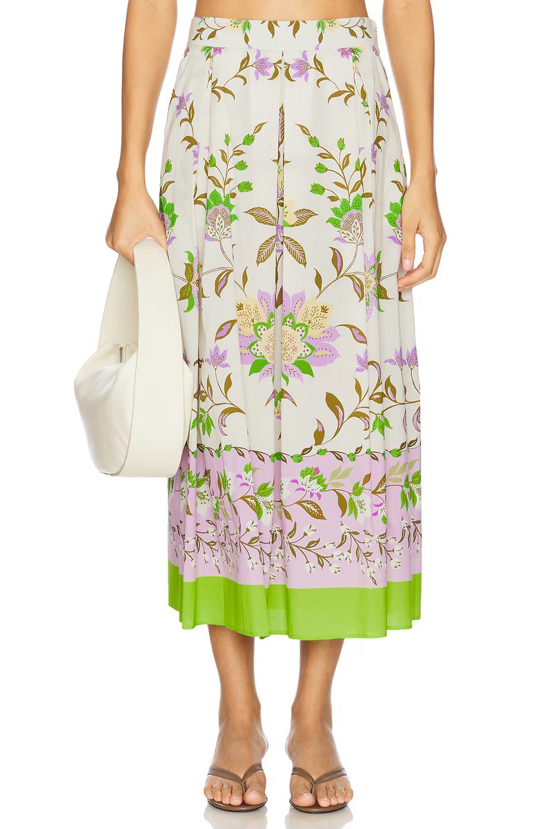 The Revolve Aggie Floral Midi Skirt in Secret Garden is ideal for casual, garden parties.