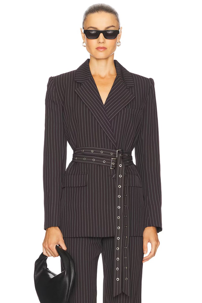 The Revolve Nonchalant Label Striped Blazer in Gray & White is ideal for business-casual, evening.