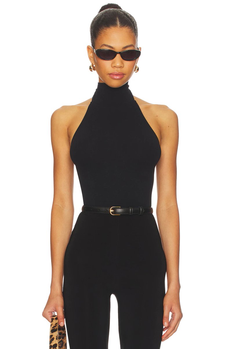 The Revolve Halter Neckline Turtleneck Bodysuit in Black is ideal for casual, modern.