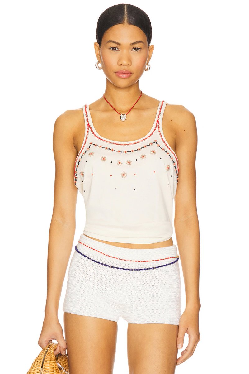 The Revolve Beaded Slim Tank in Washed White is ideal for casual.