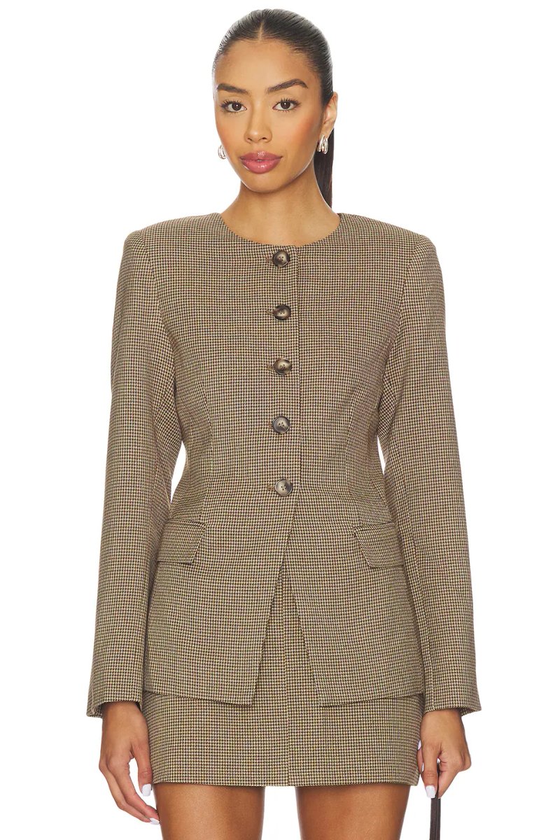 The Revolve Bellmere Jacket in Brown Houndstooth is ideal for work, casual.