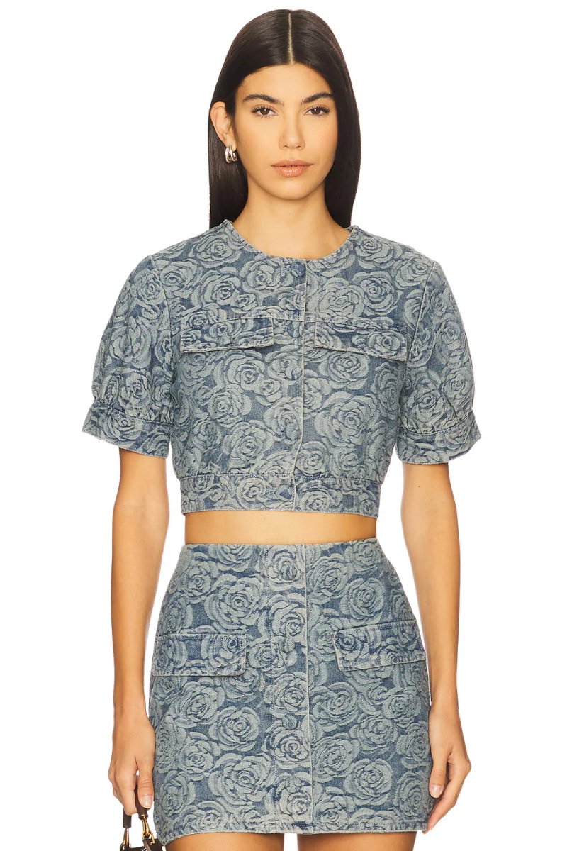 The Bello Short Sleeve Jacket by Amanda Uprichard is a floral print masterpiece in Vintage Wash. Perfect for a casual yet chic look, this jacket is a versatile addition to your wardrobe.