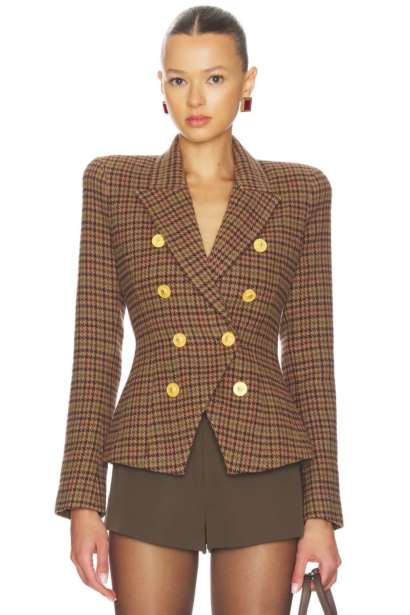 The Revolve L'AGENCE Structured Blazer in Dark Brown is ideal for business, formal, business-casual.