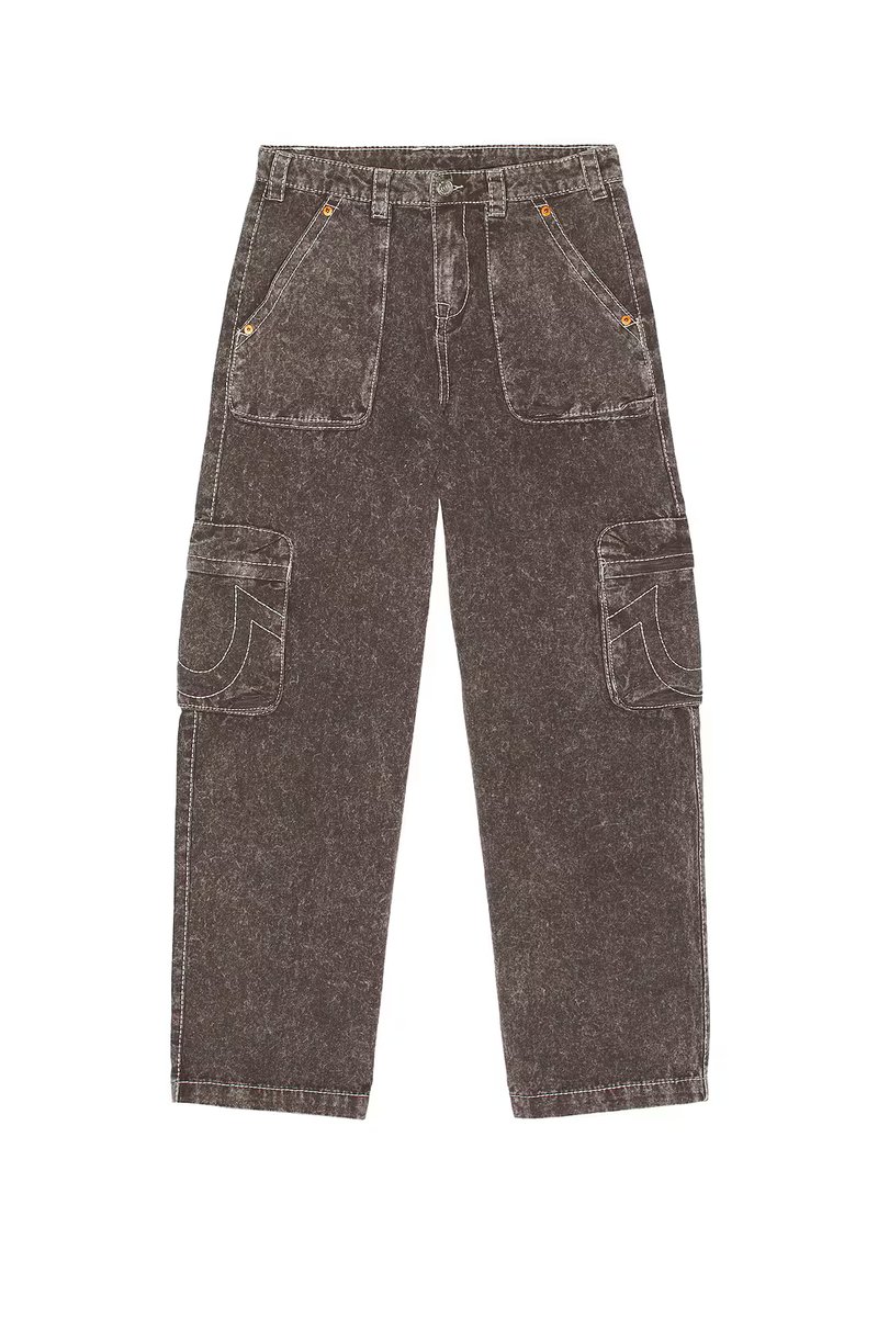 Designed with a brown acid wash, cargo pockets, zipper fly, and button closure, these cargo pants are perfect for casual outings and weekend adventures.