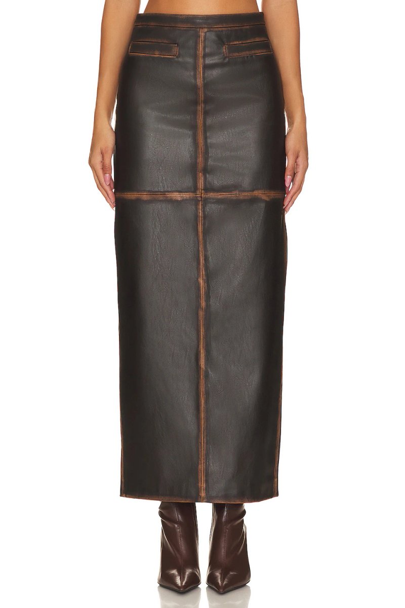 The Revolve Faux Leather Maxi Skirt in Brown is ideal for evening, casual.