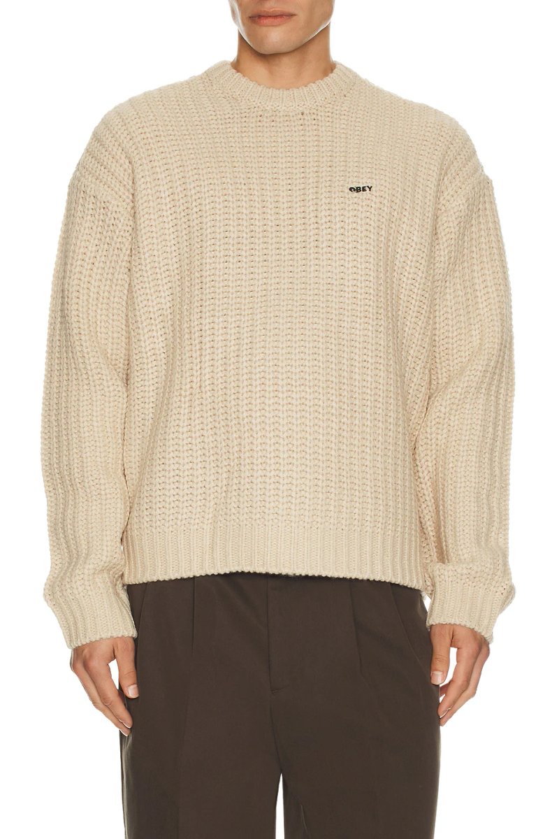 The Revolve Obey Bold Chunky Jumper in Oatmeal is available in sizes XXXL, XXL, XL, XS, L, M, S.