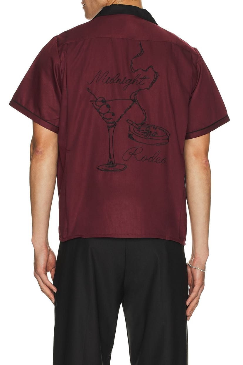 The Revolve Midnight Rodeo Bowler Shirt in Cherry is available in sizes XXXL, XXL, XL, XS, L, M, S.