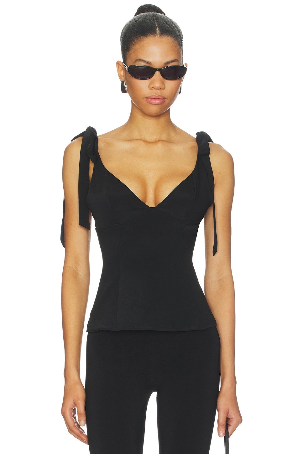 The Revolve Deep V Corset Top in Black is ideal for evening, casual, date-night.