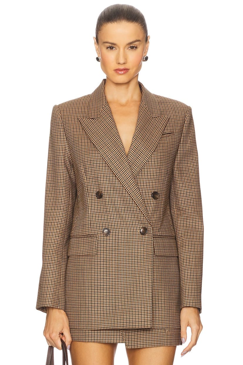 The Revolve Calla Jacket in Tan Multi Check is ideal for work, evening, date-night.