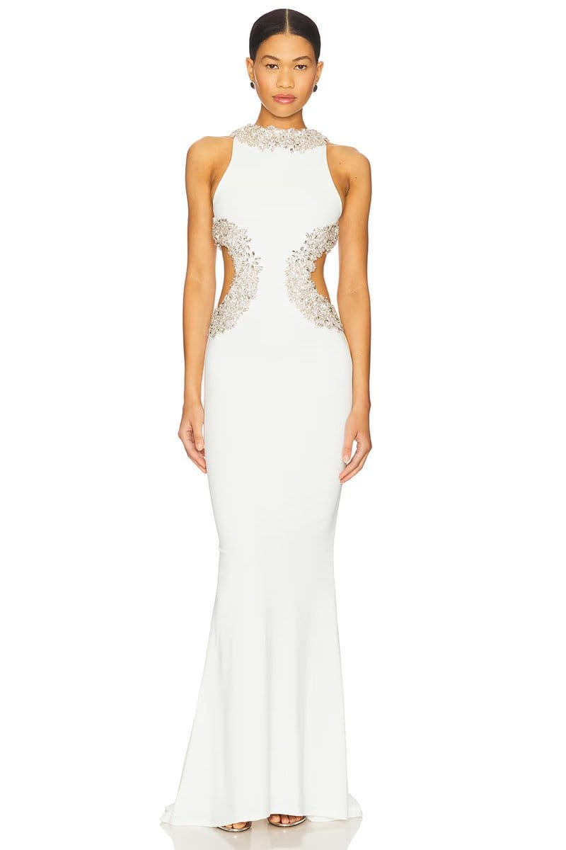 The Revolve Camila Rhinestone Gown in White is ideal for evening, formal.